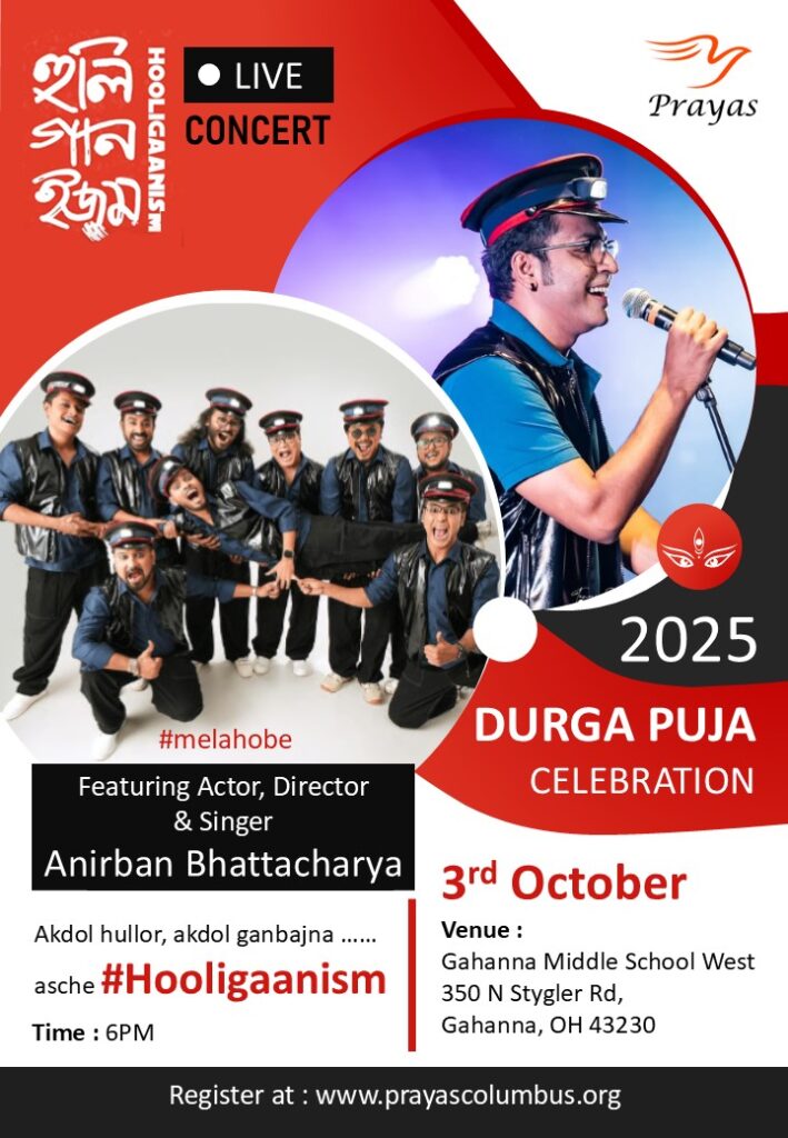 2025 Concert Night : An Unforgettable Evening With Anirban And Team Hooliganism Please enable JavaScript in your browser to complete this form. Event Date: Friday , Oct 3rd, 2025 Time: 6:00pm Venue: Gahanna Middle School West , 350 N. Stygler Road , Gahanna , Ohio 43230 Registration Rates effective until Sept 27, 2025 Name *FirstLastEmail *Email will be used for registration and payment confirmationConcert Tickets Only – $45Select One - $ 0.001 Adult - $ 45.002 Adults - $ 90.003 Adults - $ 135.004 Adults - $ 180.005 Adults - $ 225.006 Adults - $ 270.00Includes Entertainment ProgramLayoutLayoutTOTAL$ 0.00Last 4 Digits of the Zelle Confirmation ID *(1) Now go to your Zelle app/webpage and pay the TOTAL shown above (2) Next enter last 4 digits of your Zelle confirmation ID in the field above Prayas Zelle ID: prayaspay@gmail.com Use above Zelle Email ID or QR code to send payment. Enter your name in Zelle Memo line. After payment of Total amount via Zelle, you MUST select SUBMIT button below after entering your Zelle Confirmation ID. Only then will you receive a Prayas confirmation email. For technical issues contact: it@prayascolumbus.org Register Now